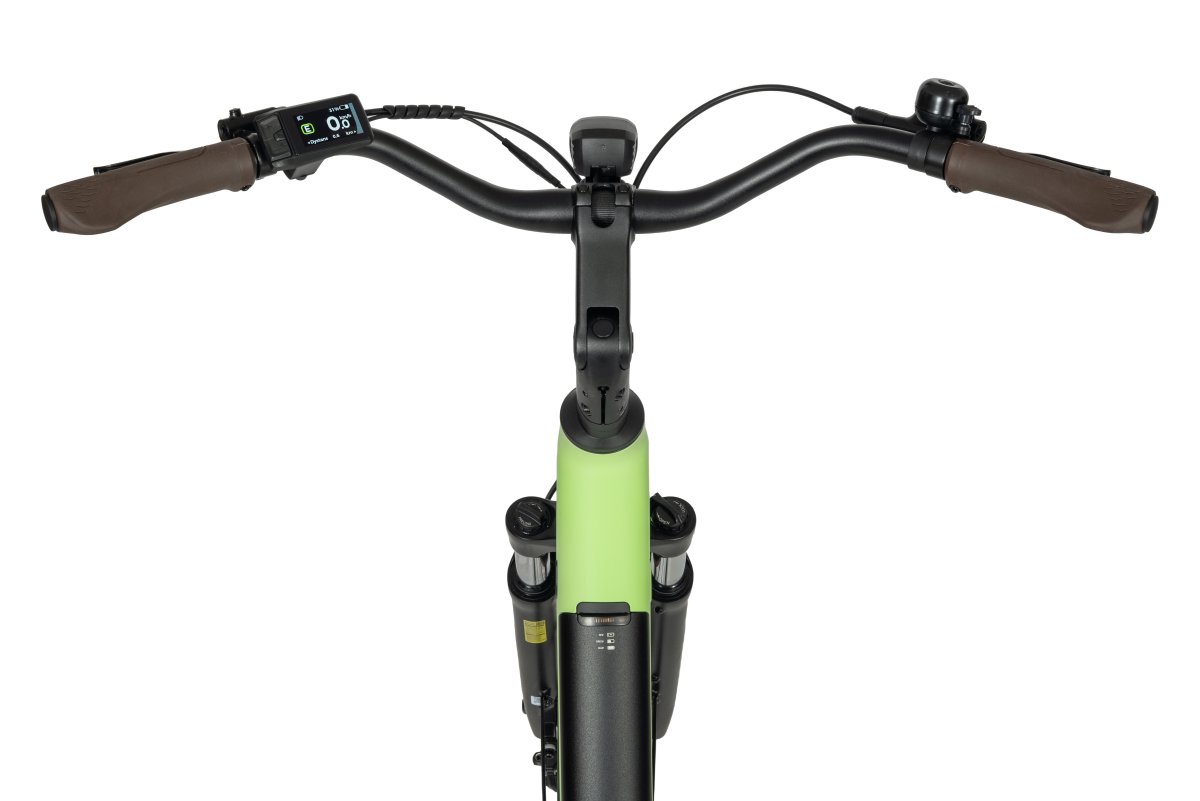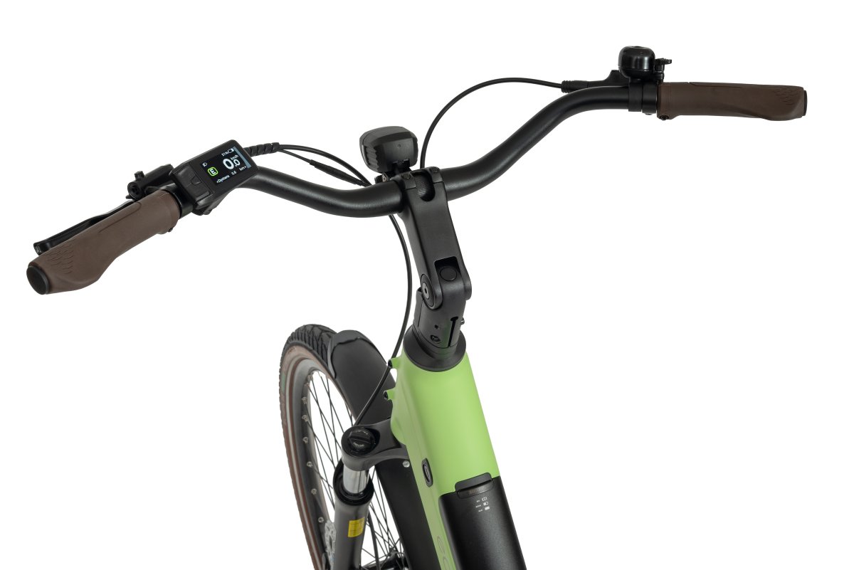 The frame geometry was created with urban routes in mind – comfortable, stable, and safe. The reinforced down tube adds extra stiffness, while the clean cockpit system keeps all cables neatly hidden for a sleek and tidy look.