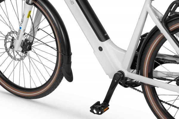 Przeciętny rower elektryczny waży około 22-24 kg. Na dodatkowe kilogramy składają się głównie bateria oraz silnik, natomiast wyższa waga roweru nie jest w żaden sposób odczuwalna podczas jazdy, a napęd elektryczny skutecznie pozwala całkowicie o niej zapomnieć. W ofercie Ecobike znajdują się także lekkie modele, których waga wynosi ok. 16-17 kg
