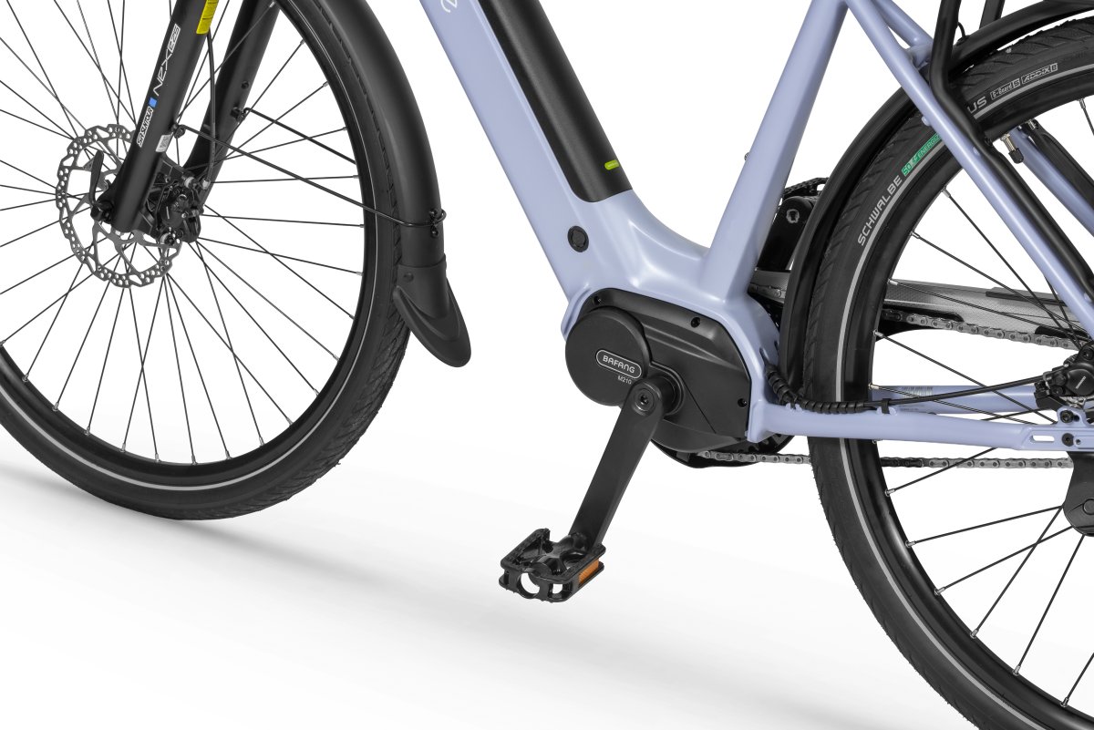 Miejska geometria ramy i wzmacniana dolna rura gwarantują stabilność i wygodną, wyprostowaną pozycję. Dzięki systemowi czystego kokpitu przewody są ukryte, a rower prezentuje się elegancko i nowocześnie.