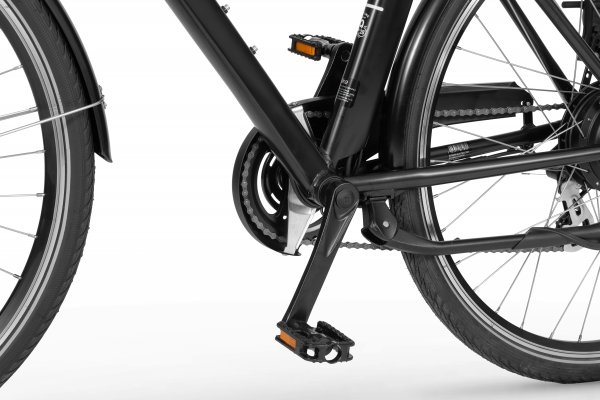 Rower napędza stosowana przez nas od lat jednostka BAFANG o mocy 250W umieszczona w tylnej piaście, wspierana przez baterię bagażnikową w kilku wariantach. Ciekawostką jest nowa technologia Smart BMS zastosowana w akumulatorach o większej mocy, która zapewnia bateriom jeszcze lepszą wydajność i pozwala dłużej cieszyć się bezproblemową eksploatacją. Na swoim miejscu pozostaje też ceniona przez wielu użytkowników manetka gazu.