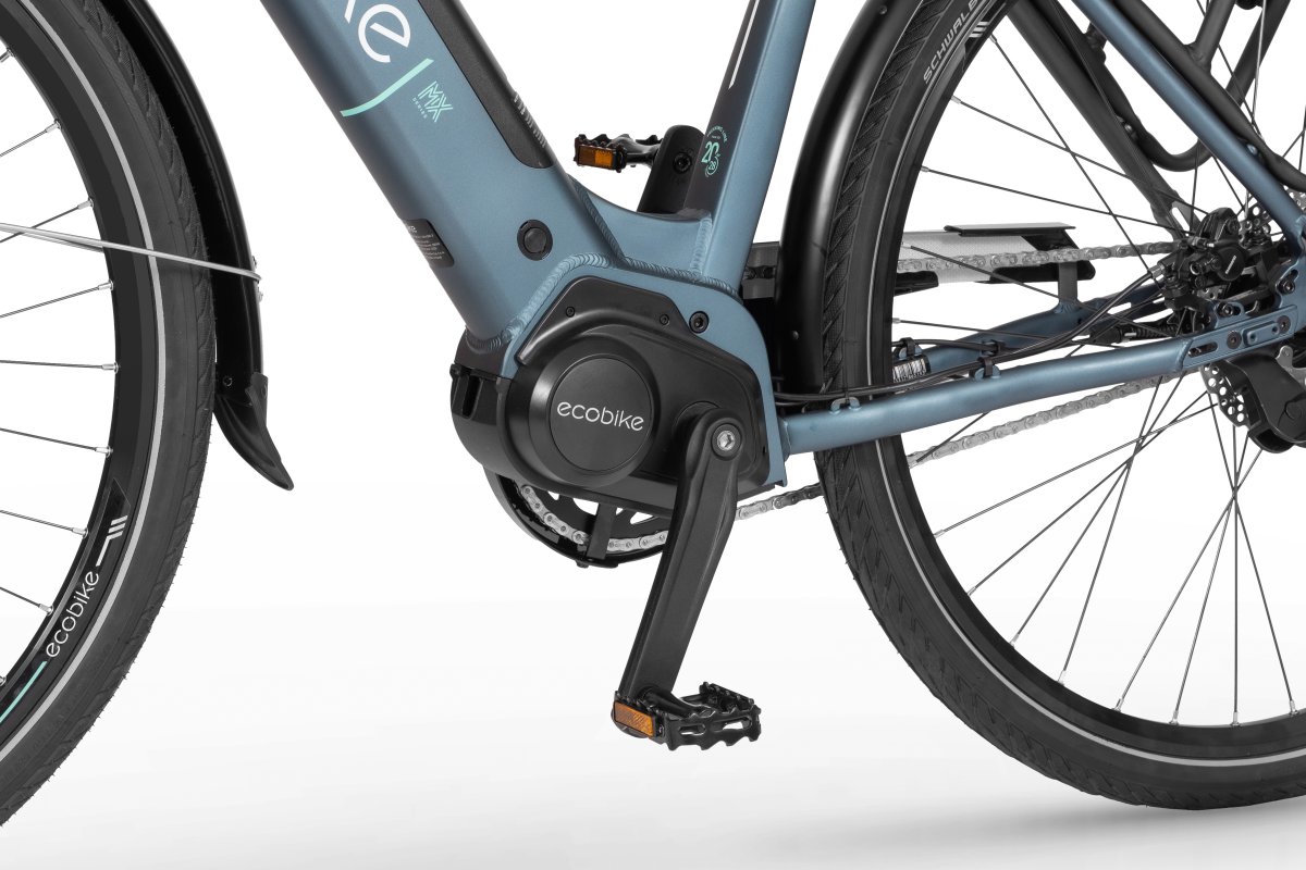 Sercem Ecobike MX jest dopracowany i stosowany przez nas od dłuższego czasu silnik centralny ANANDA. Jego wysoki moment obrotowy, osiągający 100 Nm zapewnia wydajne wsparcie nawet na stromych podjazdach. Wyposażony w czujnik nacisku potęguje wyjątkowe wrażenia podczas jazdy, która nawet w trudnych warunkach pozostaje płynna.