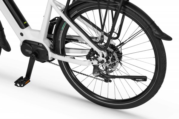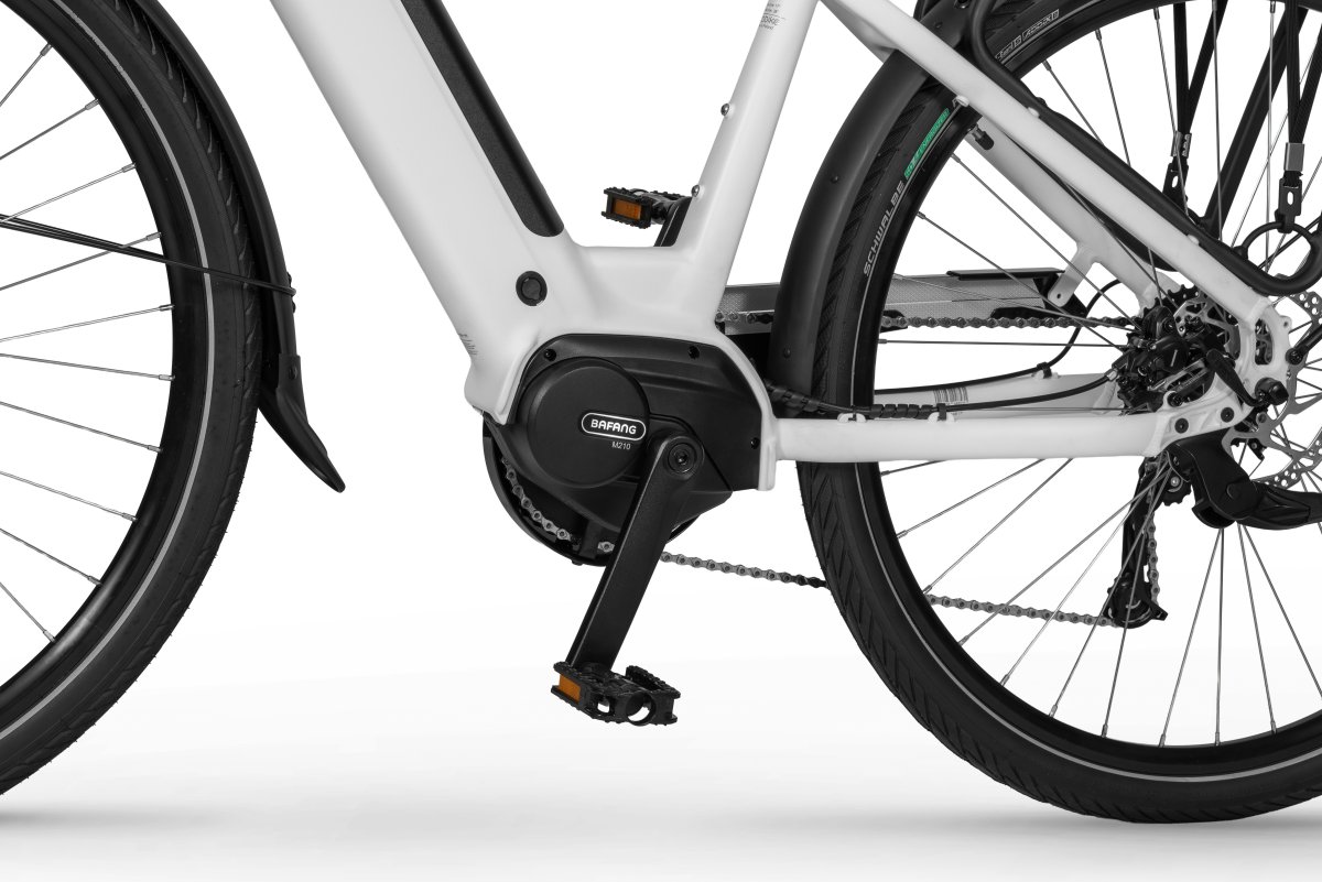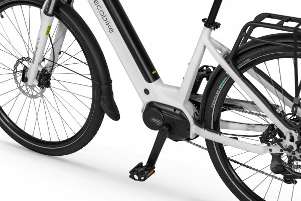 Rower elektryczny Ecobike LX 100 wyposażyliśmy w inteligentny system wspomagania z silnikiem Bafang® M210, który pracuje cicho i optymalnie dysponuje mocą oraz momentem obrotowym, który sięga aż 80 Nm. Geometria ramy pozwala na wygodne zajęcie komfortowej pozycji do jazdy, a uniwersalny design wpasuje się w zróżnicowane gusta. System MIK zastosowany w bagażniku umożliwi Ci bezpieczny montaż sakw.