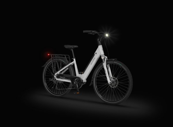 Ecobike LX 100 został wyposażony w nowoczesne oświetlenie, które gwarantuje widoczność po zmroku i w trudnych warunkach. Nowością jest tylna lampka z funkcją Emergency Stop – podczas hamowania świeci mocniej, ostrzegając jadących za Tobą kierowców i rowerzystów. To rozwiązanie zwiększa bezpieczeństwo w ruchu miejskim i dodaje pewności w każdej sytuacji.