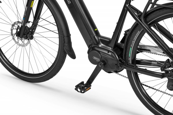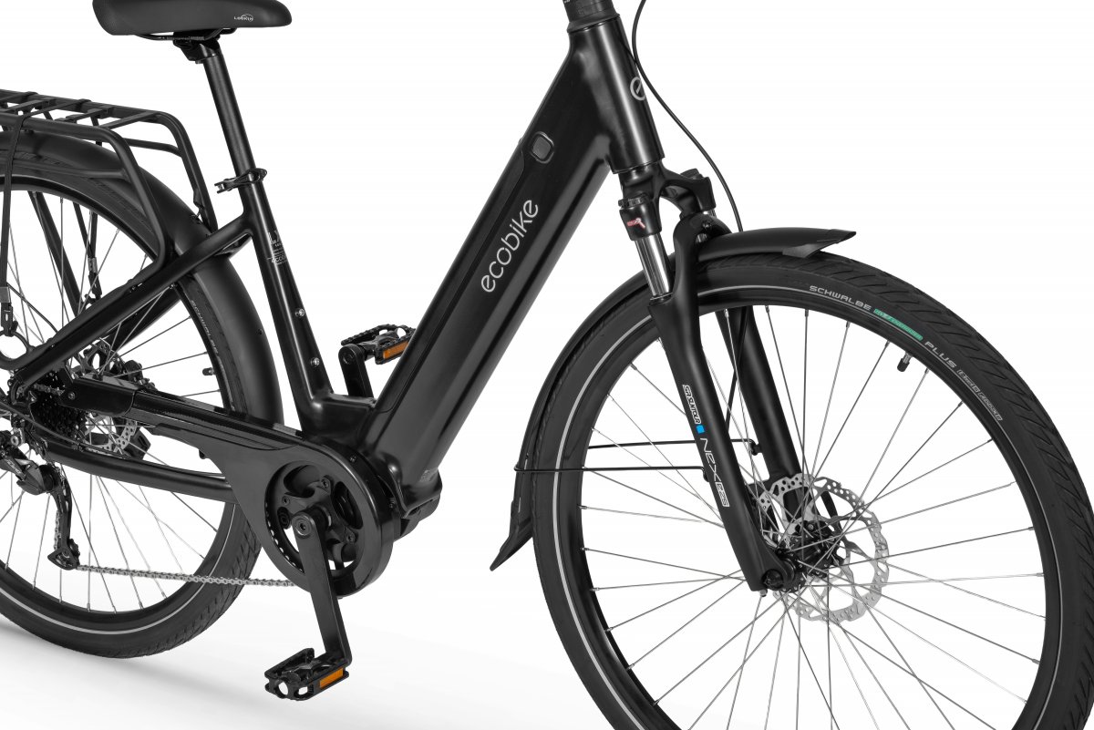 Rower elektryczny Ecobike LX 100 wyposażyliśmy w inteligentny system wspomagania z silnikiem Bafang® M210, który pracuje cicho i optymalnie dysponuje mocą oraz momentem obrotowym, który sięga aż 80 Nm. Geometria ramy pozwala na wygodne zajęcie komfortowej pozycji do jazdy, a uniwersalny design wpasuje się w zróżnicowane gusta. System MIK zastosowany w bagażniku umożliwi Ci bezpieczny montaż sakw.