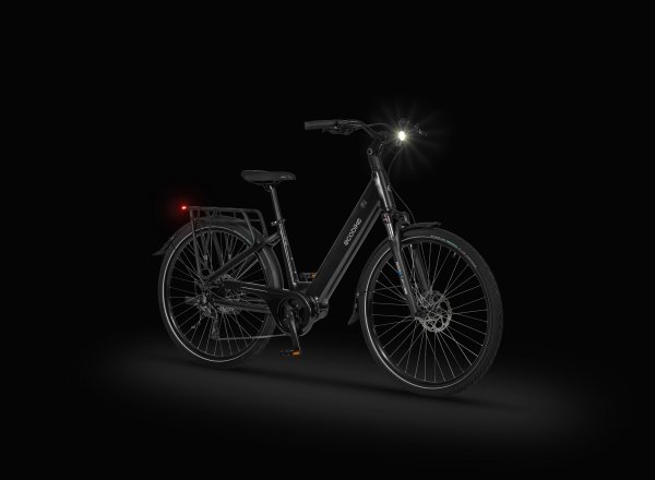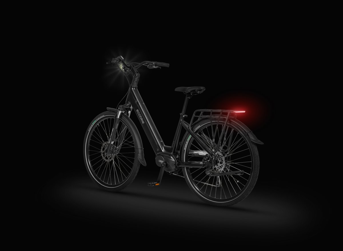 Ecobike LX 100 został wyposażony w nowoczesne oświetlenie, które gwarantuje widoczność po zmroku i w trudnych warunkach. Nowością jest tylna lampka z funkcją Emergency Stop – podczas hamowania świeci mocniej, ostrzegając jadących za Tobą kierowców i rowerzystów. To rozwiązanie zwiększa bezpieczeństwo w ruchu miejskim i dodaje pewności w każdej sytuacji.