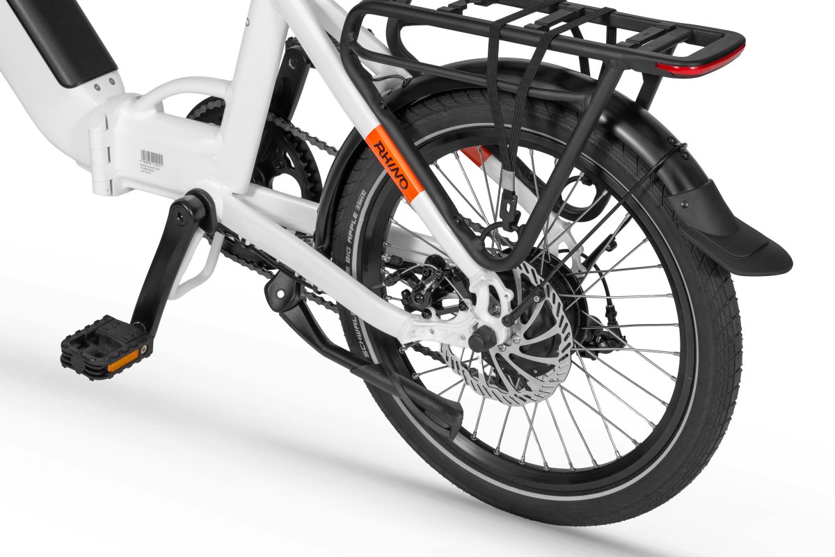 Innowacją w stosunku do innych elektrycznych składaków jest przede wszystkim rama. Dzięki w pełni zintegrowanej baterii w całości umieszczonej w nowej, solidnej konstrukcji, uzyskaliśmy znakomitą ergonomię, rower świetnie się prezentuje, i jeszcze lepiej jeździ. Wygodniejsze stało się wkładanie i wyjmowanie akumulatora. Do wyboru dwie opcje wielkości baterii: 522 oraz 630 Wh.